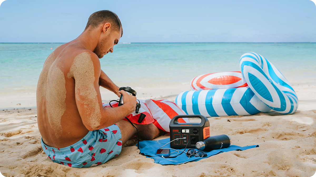 Jackery Explorer 240 Portable Power Station has a 240Wh lithium-ion battery pack. The multifunctional outputs, including 1 * AC outlet, 1 * DC car port, and 2 * USB-A ports, with a pure sine wave inverter, helps you power many types of devices simultaneously.
